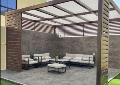 استمتع بأجواء خارجية مثالية مع جلساتنا وبرجولاتنا تعد الجلسات الخارجية والبرجولات من أهم عناصر تصميم المساحات الخارجية، حيث تضيف لمسة من الأناقة والراحة إلى البيئة المحيطة. في شركتنا، نقدم مجموعة متنوعة من الجلسات الخارجية والبرجولات المصممة بأسلوب عصري يلبي احتياجاتك. لماذا تختار جلساتنا وبرجولاتنا؟ تصاميم فريدة: نقدم تشكيلة متنوعة من الجلسات الخارجية والبرجولات بتصاميم مبتكرة تناسب جميع الأذواق والمساحات. مواد عالية الجودة: نستخدم مواد متينة ومقاومة للعوامل الجوية كالألمنيوم والخشب الصلب لضمان قوة واستدامة الجلسات والبرجولات. تنفيذ متقن: يتم تصنيع وتركيب جلساتنا وبرجولاتنا بدقة واهتمام بالتفاصيل لضمان الجودة والمتانة. تخصيص وفقًا لاحتياجاتك: نقدم خدمات تصميم وتنفيذ جلسات وبرجولات مخصصة تتناسب مع متطلباتك وتحقق رؤيتك بدقة. اجعل فضاءك الخارجي مكانًا مثاليًا للاسترخاء والترفيه استمتع بأجمل اللحظات في أماكنك الخارجية مع جلساتنا وبرجولاتنا العصرية. اتصل بنا اليوم لاستشارة مجانية واكتشاف كيف يمكن لجلساتنا وبرجولاتنا تحويل فضاءك الخارجي إلى ملاذ هادئ وجميل.